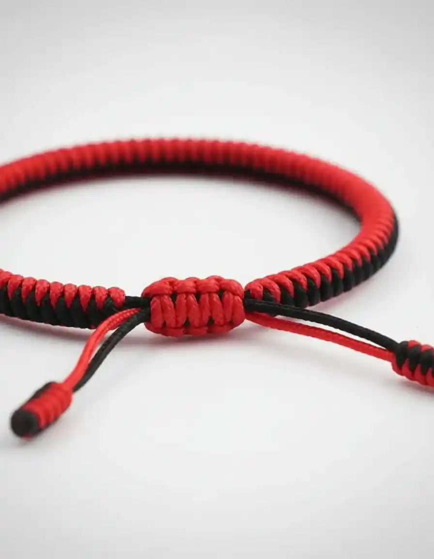 Pulseras trenzadas con hilo de algodón y seda, hechas a mano por budistas. Se usan para la suerte, y/o como símbolo de amistad y amuleto.